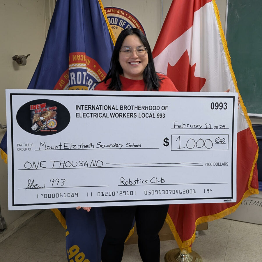 IBEW 993 Donates $1000 to Mount Elizabeth Middle Secondary School Robotics Club