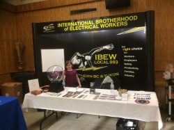 March 23 IBEW local 993 attended the Friends of First Nations job fair in Prince George. We attend these job fairs for 3 reasons. 1 - They are very cost effective compared to many of the larger events. 2 - It allows us to talk directly with members of the community about the challenges they face, the destructive effect the non-union sector has on the local economy and workforce, and how the IBEW can help. 3 - This is also where non-union contractors go to hire workers and we need more signatory contractors so it allows me to introduce the IBEW to them as well. We also met with PGNAETA and we are creating a Solar initiative with them.