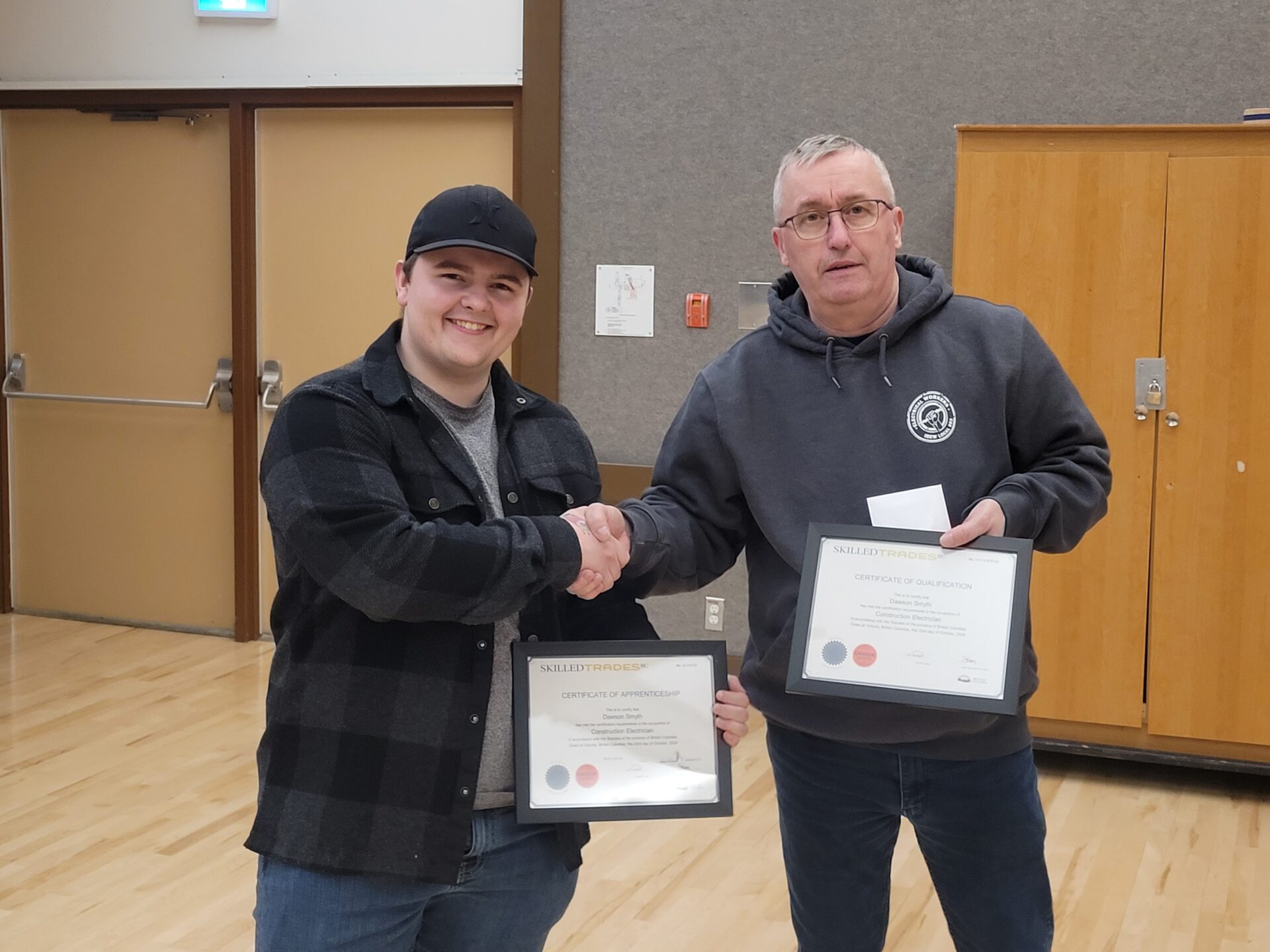 At the January 2025 Unit III Meeting in Kitimat, Business Manager Jim Bicknell presented Dawson Smyth with his Red Seal Certification. Dawson is currently working for Servco in Kitimat.